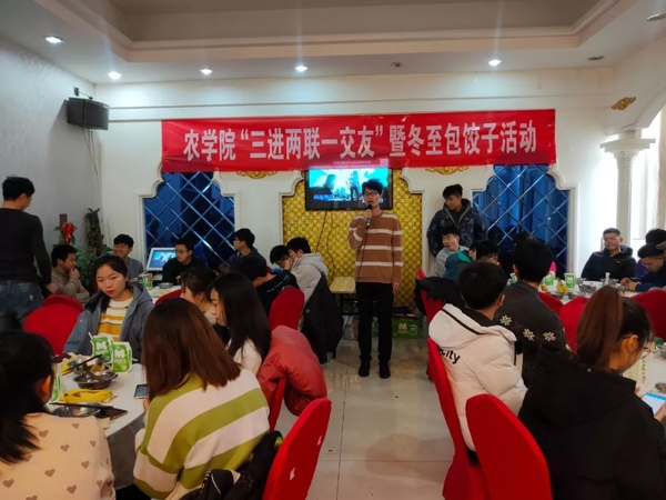 2019年12月19日晚,做爱动漫 学工部部长、学生处处长孟利明,做爱动漫 党委书记孙英,副院长康定明,辅导员陈梦媛、牛超及学生们一起吃饺子共度冬至。餐桌上,康定明从传统文化和地理意义给大家讲述中国传统节日冬至。同学们也积极踊跃向大家介绍了他们的家乡是怎样过冬至的:“冬至不吃饺子会烂耳朵;在冬至那天吃面条的话会遇见蛇……”随后几个同学伴着音乐跳起舞来,老师们也唱起了歌,“三进两联一交友,民族团结一家亲”的精神熠熠生辉。