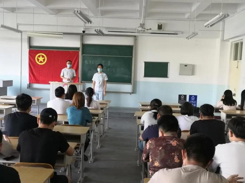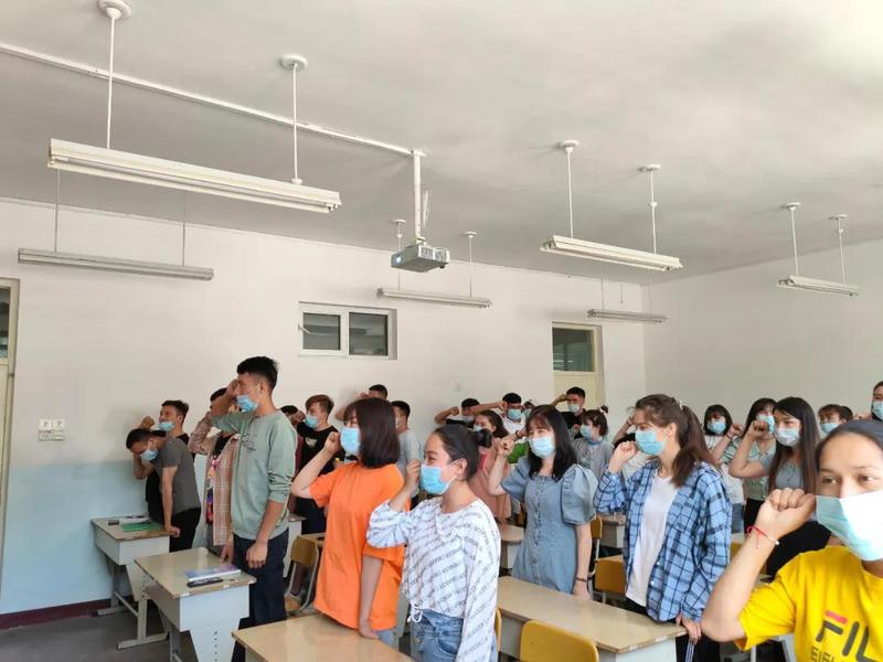 最后,各班团支书总结点评,全体起立面向团旗重温入团誓词。