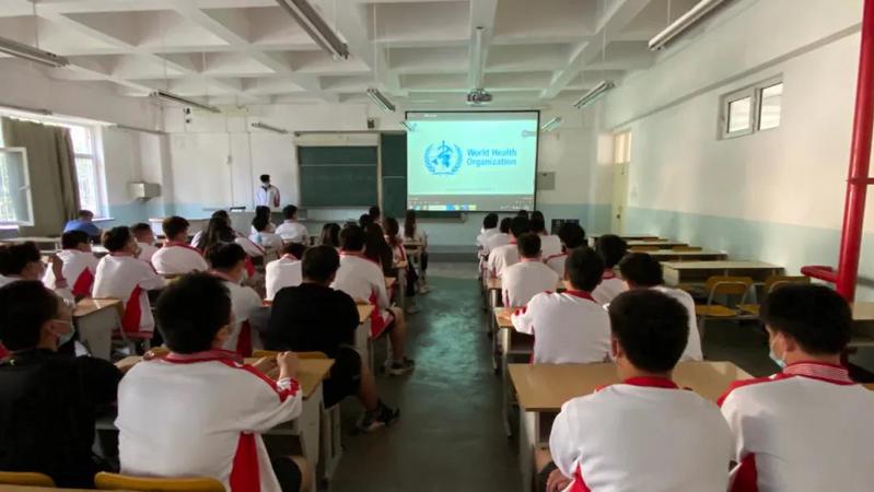 随后各班团支书为学生播放《沉迷网游会影响大脑发育吗?》视频。