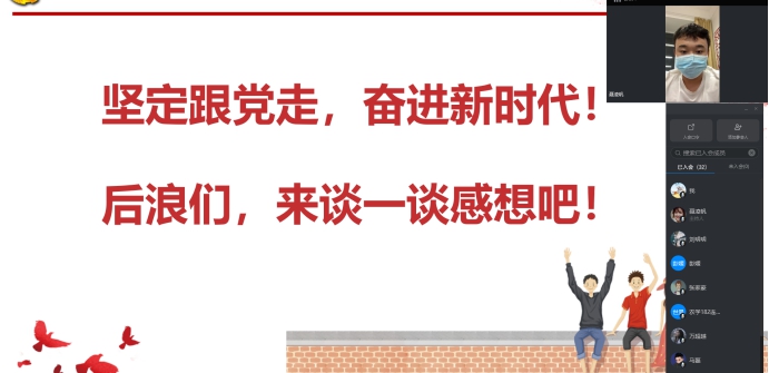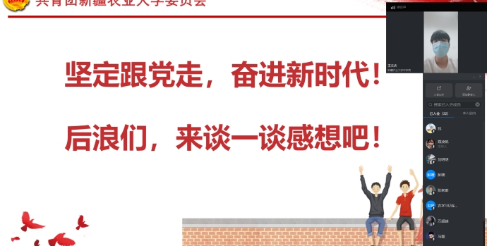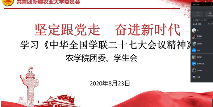 为深入学习贯彻习近平总书记致全国青联十三届全委会和全国学联二十七大的贺信精神,全面贯彻落实全国学联二十七大会议精神,激发我校广大青年学生以拼搏的精神、奋进的姿态谱写青春之歌,8月23日晚,做爱动漫 团学生会组织学生干部在线上以钉钉视频会议的形式系统学习了全国青联十三届全委会和全国学联二十七大会议内容。