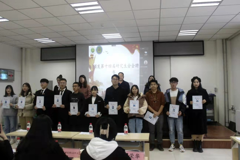 伴随着庄严的国歌,本次的大会拉开了帷幕。首先,第十四届主席董一帆从投身志愿一线,践行初心使命;丰富文娱活动,增强身心健康;投身防控一线,践行初心使命;优化组织架构,完善制度建设等方面对上一届研究生会工作进行了回顾与总结。最后以“不忘初心,勇担使命”这8个字肯定了第十四届研会成员的工作态度,字里行间见证的不仅仅是一次次的活动,更是辛勤的汗水。接下来,四位老师为第十四届研究生会全体成员颁发了证书,并对他们的工作表示感谢以及肯定。