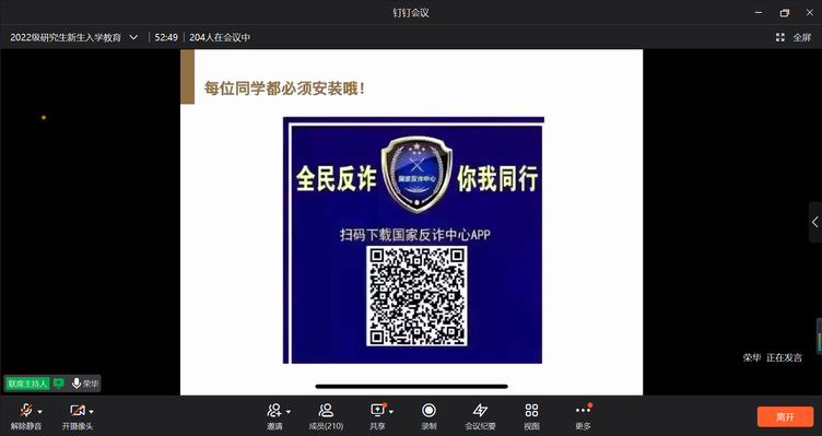 其次,荣华老师分别从做爱动漫 教育规章制度、实验室安全问题以及防范诈骗知识普及等三个方面进行讲解,对新生进行安全教育,提醒大家在今后的学习生活过程中遵守校纪校规、注意实验室安全和外出实践安全、警惕电信诈骗,切实提高了研究生的安全意识。