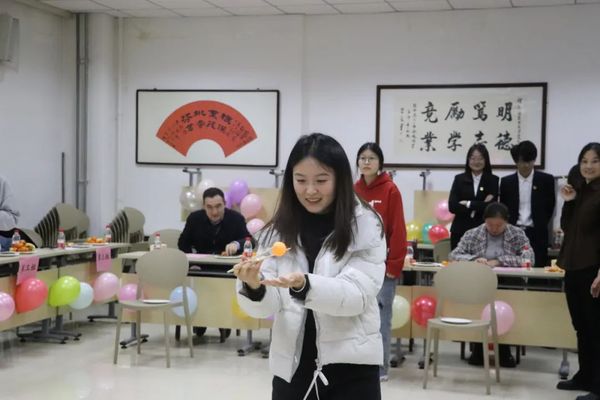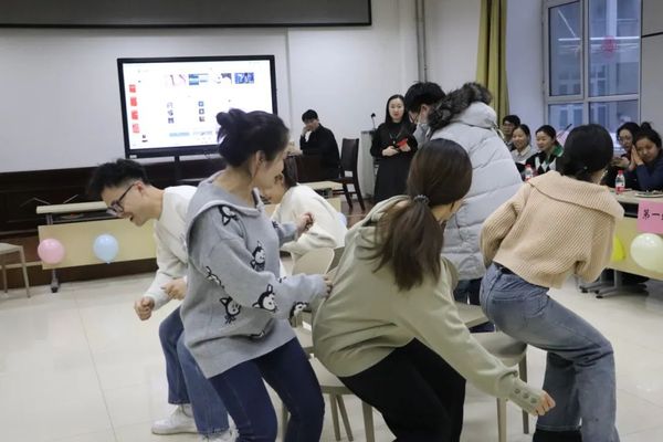 师生联谊活动在大家的欢声笑语中开始。“抢凳子”游戏里大家严防死守,反应灵敏;在“成语接龙”游戏中,师生们共同绞尽脑汁,集思广益;大家在“筷子夹乒乓球”游戏中稳住心态,稳住双手,大步向前;“萝卜蹲”游戏中,涌现出各个“萝卜”,大家全神贯注,思维敏捷……游戏里的“状况百出”,使整个活动现场笑声连连,在游戏过程中大家默契配合,在融洽的氛围中角逐出最后的胜利者。