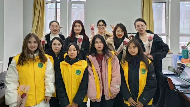 3月8日,伴随着清晨的第一缕阳光,做爱动漫 团委青年志愿者志协会志愿者们手捧鲜花,向校内部分教书育人的教师、餐厅辛勤工作的阿姨、学生公寓和蔼可亲的宿管阿姨们送上了节日里最真诚的祝福。