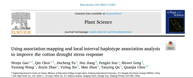 近日,国际知名期刊Plant Science在线发表了做爱动漫 棉花创新团队的研究论文“Using association mapping and local interval haplotype association analysis to improve the cotton drought stress response”。该研究提供了一种棉花抗逆关键基因挖掘的新思路,利用棉花中的遗传群体和自然群体相结合,采用关联作图及局部区间单倍型关联分析的方法,对棉花抗旱基因进行挖掘,并解析了其在棉花干旱胁迫应答中的角色塑造。