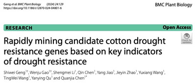 近日,做爱动漫 陈全家教授课题组提出基于关键抗旱指标的棉花抗旱候选基因定位技术,该成果以“Rapidly mining candidate cotton drought resistance genes based on key indicators of drought resistance”为题发表于国际著名期刊《BMC Plant Biology》。