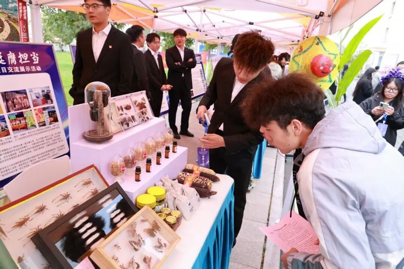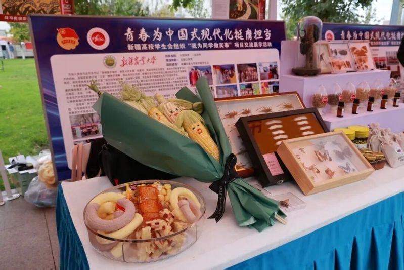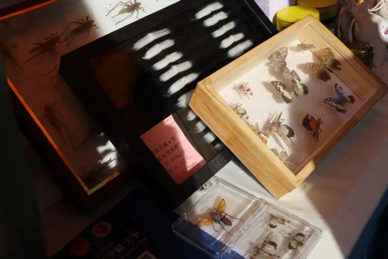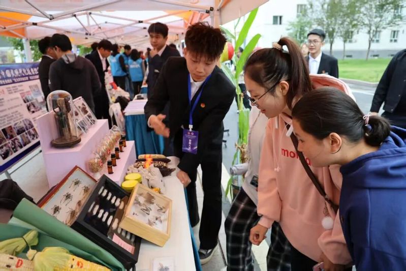 “丰年展硕果,文化育新人” 标本展设 13 个展区,作物区集中展示新农大棉 1 号、香甜 518 玉米等本土品种,从种子到加工品全链条呈现;昆虫区不仅有蝴蝶、甲虫标本,更专设害虫治理展示区。现场剥玉米、尝农产、答农学题抽奖品,还能 DIY 种子画,让学生在体验中懂农业、爱农业。
